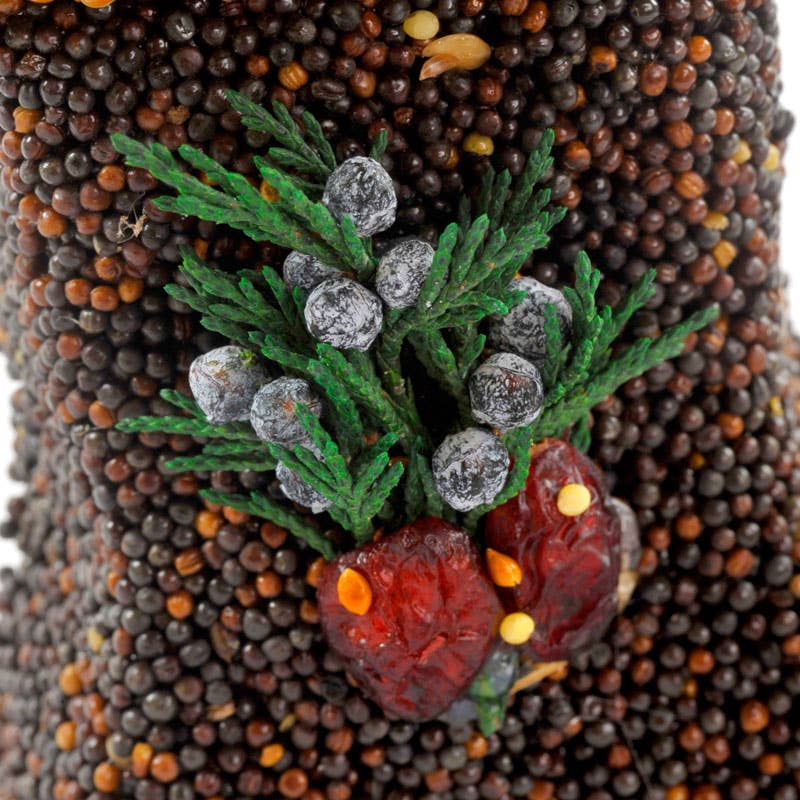 Fantastic trio of 4" solid seed ornaments includes a tree, snowman, and stocking...decorated with juniper and cranberries. The birds eat them all! All feature natural jute hangers and are presented in a display box for easy merchandising and wrapping. A delightful treat for your favorite backyard birds and a thoughtful gift for any bird-lover. The perfect stocking stuffer. Packaging information: shrink-wrapped tray.