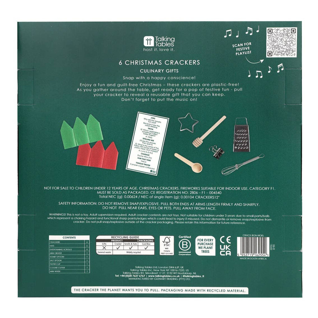 Add a refined touch to the holiday table with these Bon Noel Green Christmas Crackers. Featuring a traditional Christmas palette and Talking Tables icons, each cracker is handmade in South Africa and includes a festive hat, joke, and culinary-themed gift. Made from FSC-certified paper and fully recyclable for a more thoughtful celebration.