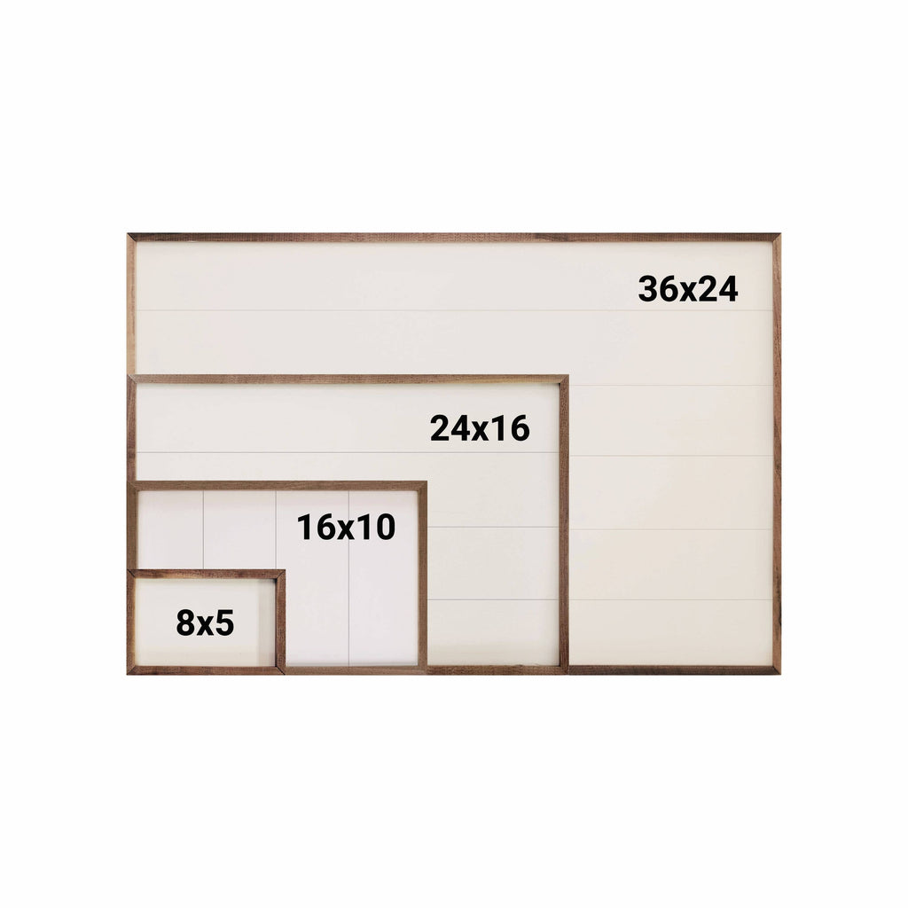 This unique piece is a simple way to bring beauty and charm to any wall or shelf within the home. It is made from high quality American hardwood planks with a hand painted face, and printed with UV cured ink, and is framed in a natural walnut frame. Each piece is unique with its own personality, marks, wood grain, and look. Easy to clean with a dry cloth.
