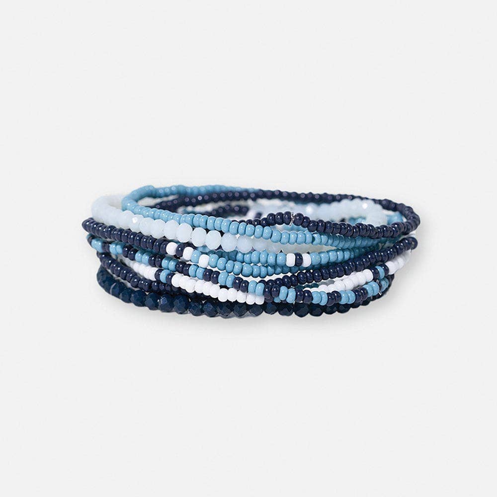 Game Day Color Block Beaded 10 Strand Stretch Bracelets Navy and Light Blue Wholesale