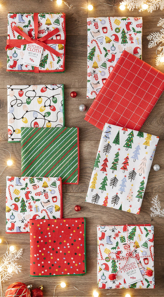 Holiday Vibes Printed Waffle Dishcloth Set Of 4